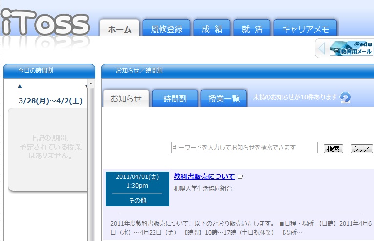 履修登録は「アイトス」の画面を通じて、web上で行います。