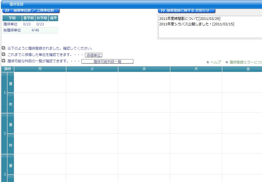 しかし履修登録時は両学期の登録を行えるので、春のうちに秋学期も履修しちゃいましょう!